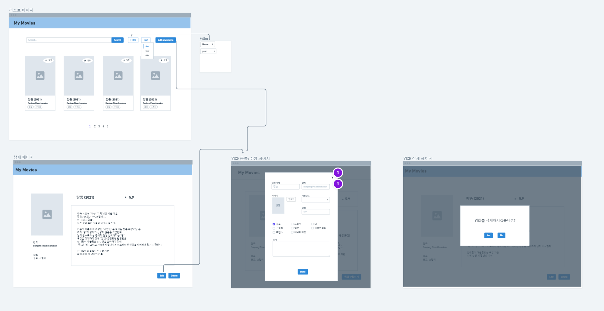 와이어 프레이밍과 JSON data도 좀 수정해 보았다.