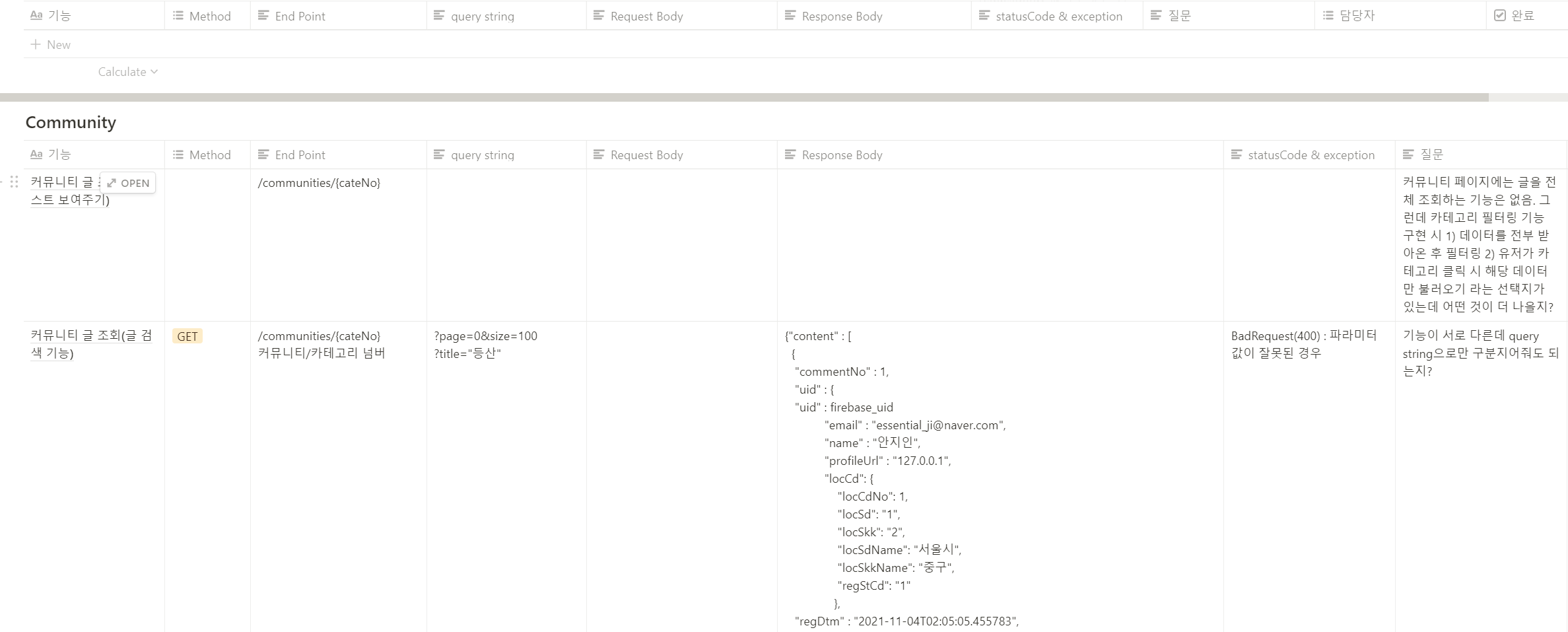 3) API 문서를 수정했다. 아직 이 부분은 수정해 나갈 때 모르는 부분이 많아서 질문사항에 적어보았다.
