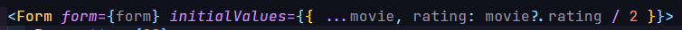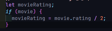 기존에는 따로 movieRating이라는 변수를 생성해서 movie가 있는지 검토 후, 있으면 나누기 2를 하는 식으로 별점을 전달했는데, 그냥 Optional chaining 연산자를 사용해서 위의 로직은 필요 없이 간단히 구현할 수 있었다.