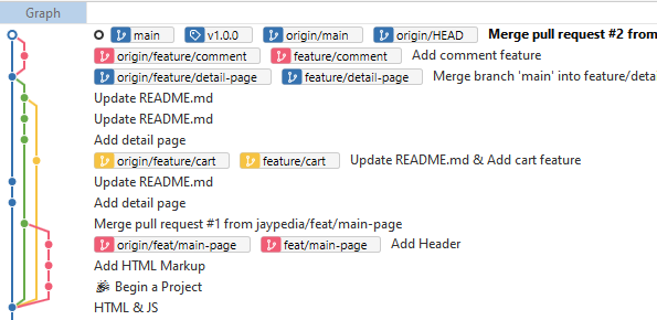 VS Code의 Source control과 CLI만 계속 써오고 있었는데 Sourcetree를 써보니 정말 편리하고 시각적으로 잘 들어오는 게 느껴졌다. 색깔 구분도 명확하고, 포인터가 딱 있어서 좋다.