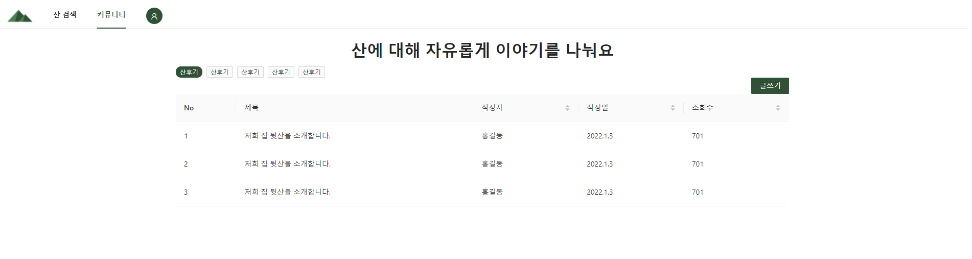 커뮤니티 메인 페이지는 Layout과 Table을 활용해 보았다.