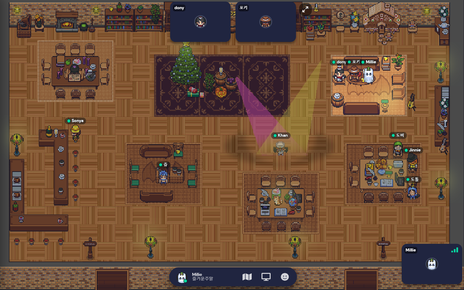 게더타운이 있어서 혼자 공부하는 느낌이 덜 들어서 좋다. 궁금할 때 질문을 할 수 있는 동료들이 주말에도 있어서 든든한 느낌이랄까. 그리고 오늘은 소소한 이벤트들이 있었다. 도니에게 질문할 때 포키도 와서 새벽 1시까지 시간 가는 줄 모르고 이야기했다.