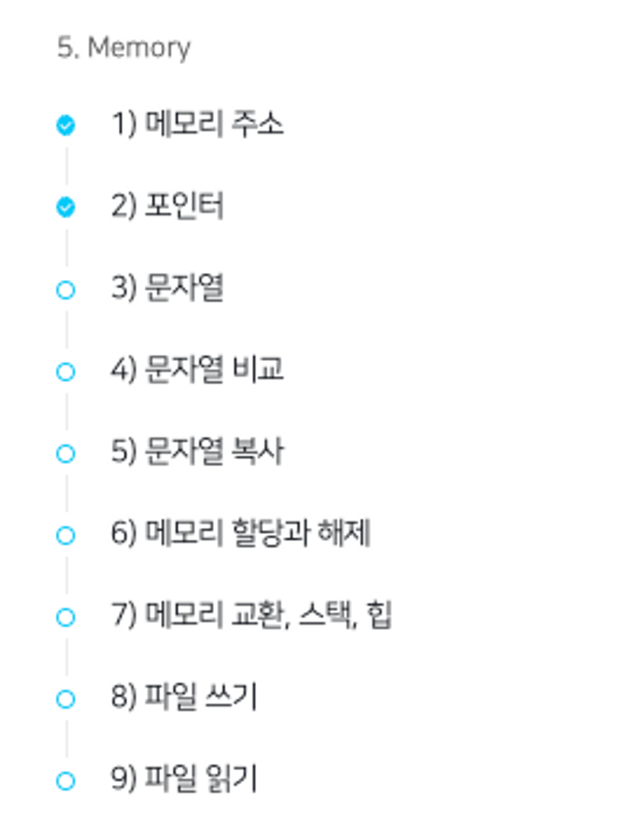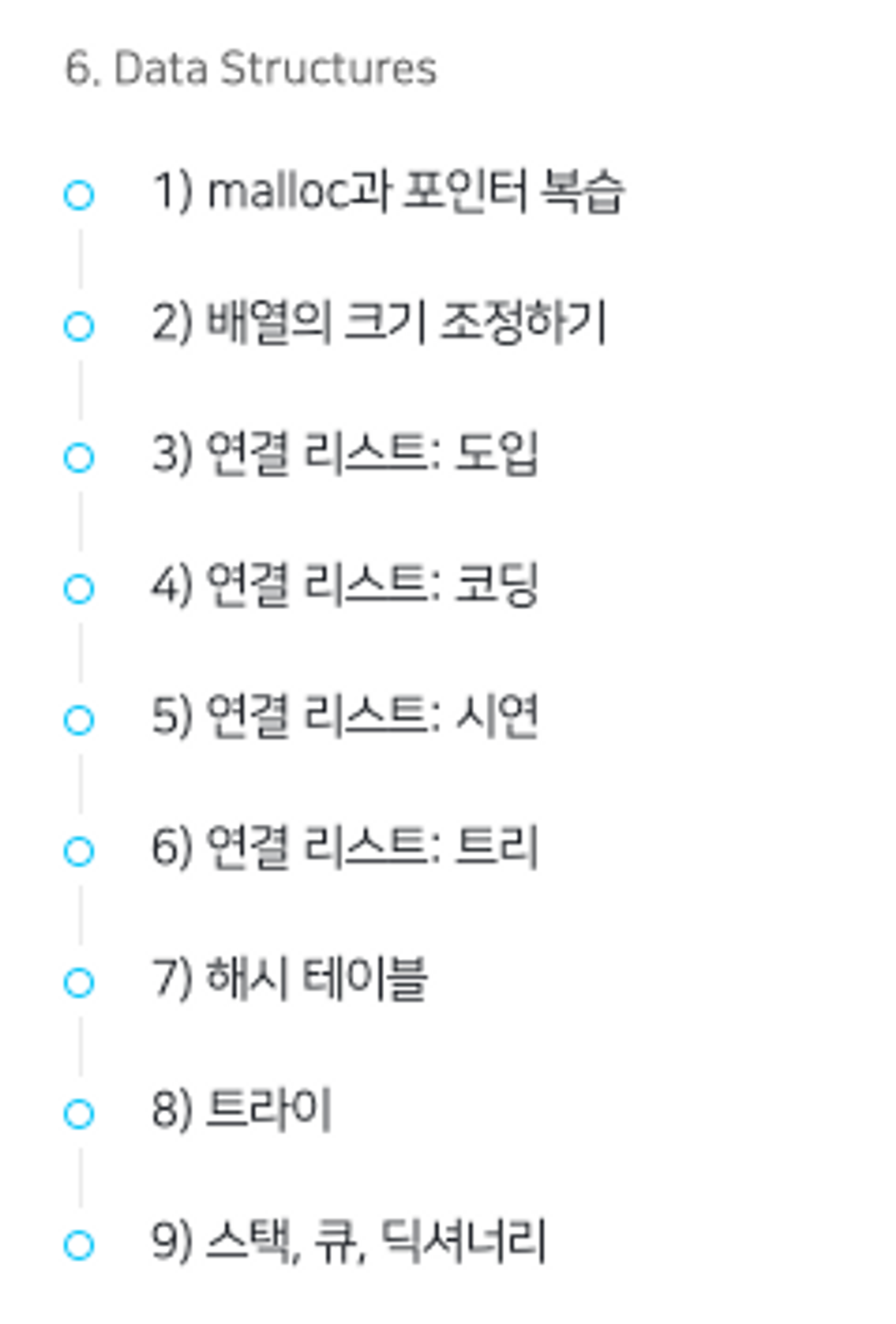 - 하버드 대학교 CS50 강의인데, 4~6챕터가 기초를 쌓는 데 특히 중요하다 생각해서 추천드렸다. 보니까 나도 중간에 듣다가 만 것이 보인다.(하얀색 동그라미는 아직 수강하지 않은 것) 이것도 시간을 내서 한 번 싹 학습해줘야겠다.