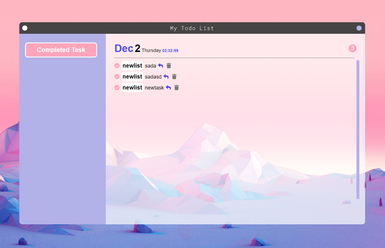 완료한 일 모아보기 기능을 추가했다. 리스트별로 태스크가 나오고 되돌리기도 가능하고, 삭제도 가능하다.